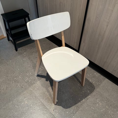 Godt brukt stol med krakk gis bort, må vaskes / renses.