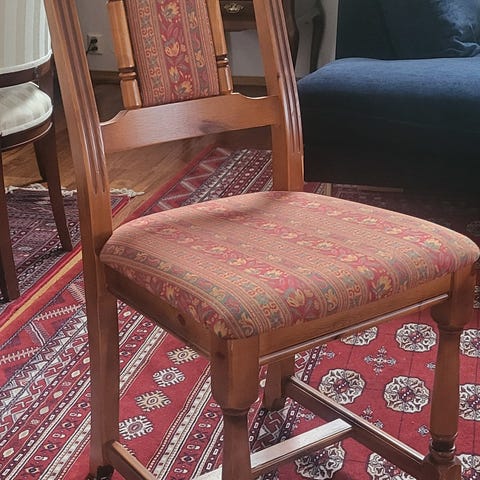 Selger disse lekre stolene da de ikke helt passet inn i stua hos oss! Har 8 stk av de. De er velholdt og i god stand. Mye karakter og super fine!