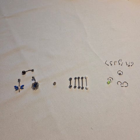 Selger 2 stk av disse piercingene til nese, de er ekte å så vidt brukt, de er sterilisert så ikke noen bakterier i det hele tatt😊