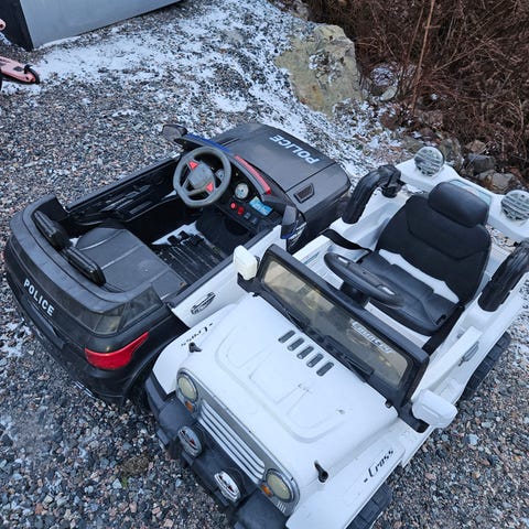 Pent brukt elektrisk lekebil for barn. Terrengkjøring, kraftig. Den leveres med fjernkontroll slik at du kan kontrollere bilen mens barnet kjører.