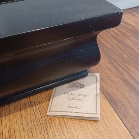 Svart hylle i metall som er lett å plassere og gir rommet et stilfult preg. Hyllen har flere ulike nivåer som kan dekoreres med bøker, vaser og lamper. Maks vekt pr minste hylleplate er omlag 5 kg. Maks vekt for de litt strørre hylleplateneer 10 kg.