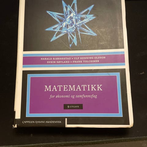 Lærebok i matematikk for økonomi og samfunnsfag, 8. utgave. Inneholder fagstoff innen matematikk og statistikk, tilpasset studenter innen økonomi og samfunnsfag. Teksten dekker relevante emner med forklaringer og eksempler.