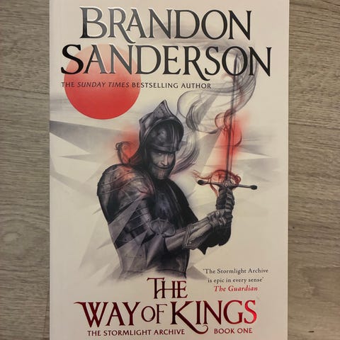 Brandon Sanderson Wind and Truth bok, femte bok i Stormlight Archive-serien. Inneholder tekst på engelsk, med omfattende innhold og rundt 1200 sider. Passer for lesere av fantasy litteratur.