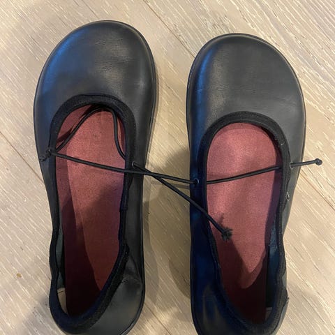 Selger et par ZKAMA barefoot sko fra Tsjekkia. Klassiske svarte snøresko med fleksibel såle og god plass til tærne – perfekt til hverdags.