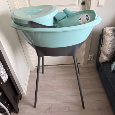 Kjøpt for fire år siden, fikk liksom aldri tatt den i bruk. Har stått inn på et soverom, så har hatt det tørt og fint.