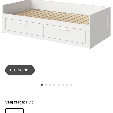 Seng med oppbevaringsfunksjon i hvit farge. Sengen har en skuffe med hjul med oppbevaringsplass under madrassen, som kan åpnes for ekstra lagringsmuligheter eller legges i ekstra madrass for 2 soveplasser.Materialet er malt MDF.Passer for enkeltrom eller barnerom. Sengen har normal slitasje, men det anbefales et nytt malingsstrøk. Sengebunn er ikke avbildet men følger med sengen.
