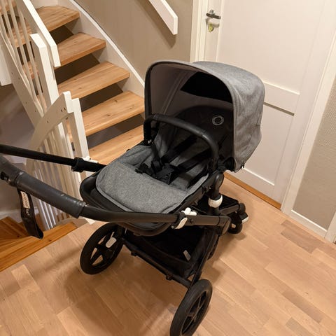 Fint brukt Bugaboo fox 3 Grey melange, kjøpt ny av oss okt 22 for 13500, kvittering følger med. tatt i bruk februar 23. Følger med 2 regntrekk, koppholder,bugaboo stelleveske,bugaboo organizer og adapter til bilstol. Vognen er pent brukt men har noen bruksmerker. Kalesjen er litt falmet i solen. Se bilder.