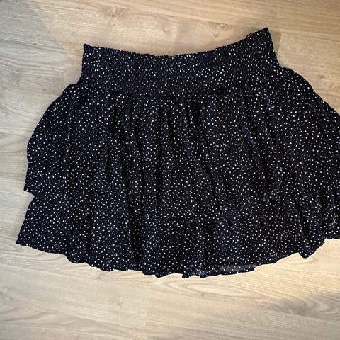 Louna sort og knelangt skjørt fra Jean Paul. Skjørtet er synlig brukt. Det har en ekstra kant nederst (se bilde 2) med litt utsving. Strikk i livet.