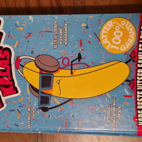 Vitse-Kalas vitsebok med samlede vitser. Boken inneholder humoristisk innhold. Sideantall er over 250 sider. Koster 50 kr🤩