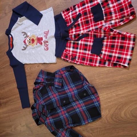 Pakke med pent brukte julepysjer til barn størrelse 86/92. Inneholder nissepysj størrelse 86/92, newbie-pysj i 86/92 og heldress julepysj i 92, alt fra KappAhl.