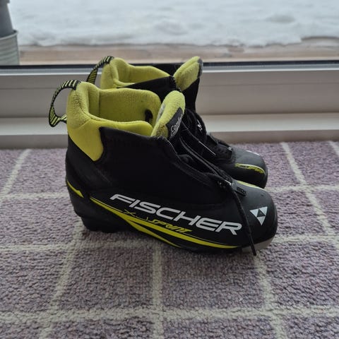 Fischer XJ Sprint langrennski sko i svart og gul farge. Skoene har solid såle med godt grep, egnet for langrenn og skiaktiviteter.