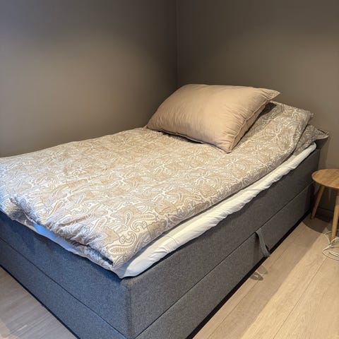 Kjøpt helt ny på jysk for litt over et år siden. Noen av plankene har knekt i enden under flytting, selges derfor for under halv pris. Sengen fungerer ellers helt topp, og jeg er veldig fornøyd med den :) kan nok enkelt fikses. Selges grunnet flytting, og plassmangel i ny leilighet.