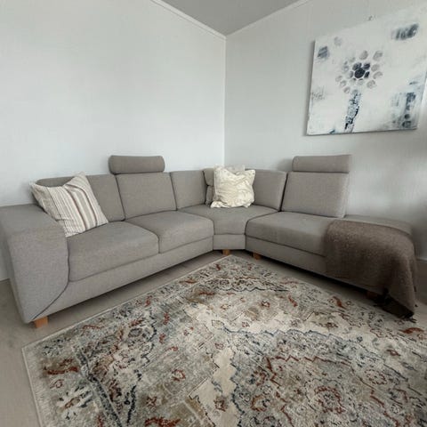 Eldre hjørne, skinn sofa i god stand. 200cmx250cm, 5-6 sitteplasser. Må hentes i Drammen sentrum.