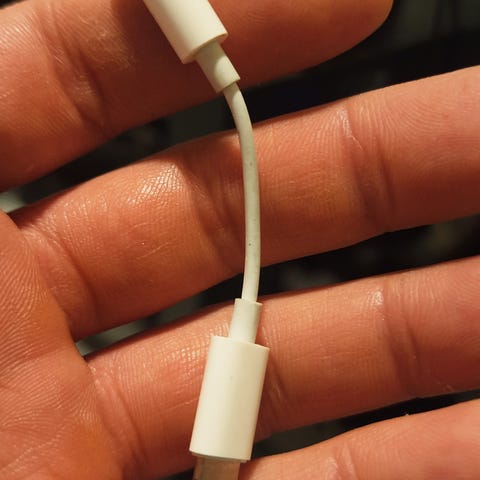 Selger her en Apple headset adapter for tilkobling av hodetelefoner med standard 3,5 mm jack til enheter med Lightning-kontakt.