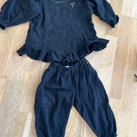 Nydelig woolland sett selges! Vi kjøpte litt feil størrelse så dette er veldig lite brukt. Ingen hull, en liten ubetydelig rift i buksa (se bilde). Et litt mørkere område på bodyen bak på ryggen nederst. Masse bruk igjen:-) Str 86-92
