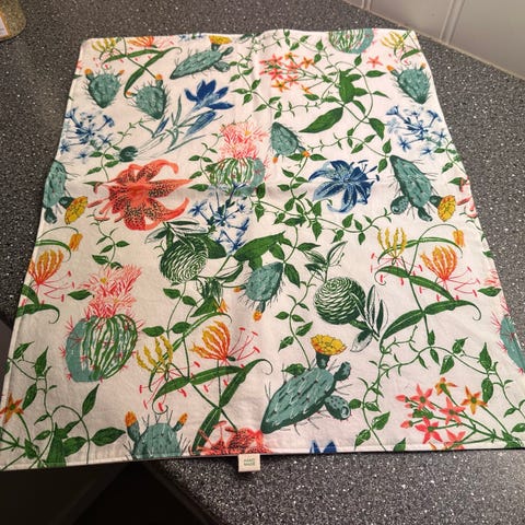 Disse er populære og praktiske kleder til bruk ved heving av gjærdeig i bakebolle og på bakebrett. Dette er et eksempel i et nydelig bomullsstoff og jeg syr flere med jevne mellomrom. Har masse stoff i ulike farger så du kan gjerne ta kontakt dersom du har ønsker for størrelse og farge så finner vi en løsning.