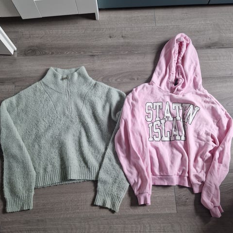 Fire gensere i str. 170 (small) det står M på den ene genseren men er med som S