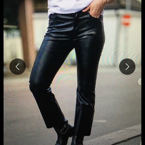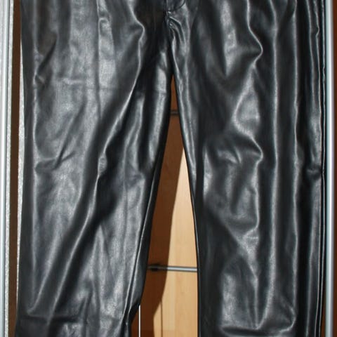 Vintage Skinnbukser, med slengbein. Tror ikke det er ekte lær, merke er OBJECT, str: XL, kjøpt brukt og godt brukt, har noen bruksmerker men er helt inntakt