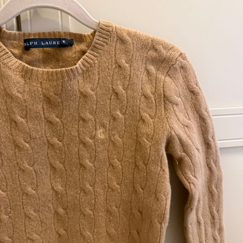 Ralph Lauren genser laget av 100% kashmir. Genseren er lilla og har detaljer som albuelapper. Den er designet for voksne strl