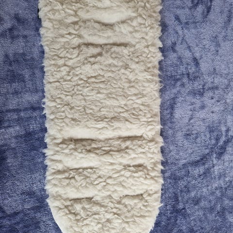 Sømmen rundt seleåpningene er litt løs etter vanlig bruk, men dette påvirker ikke bruken eller sikkerheten. Hullene er originale for sele.