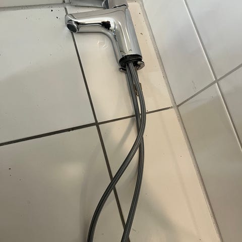 Badekaret er sammenlagtbar men magler delen for å låse, men kan fortsatt brettes.