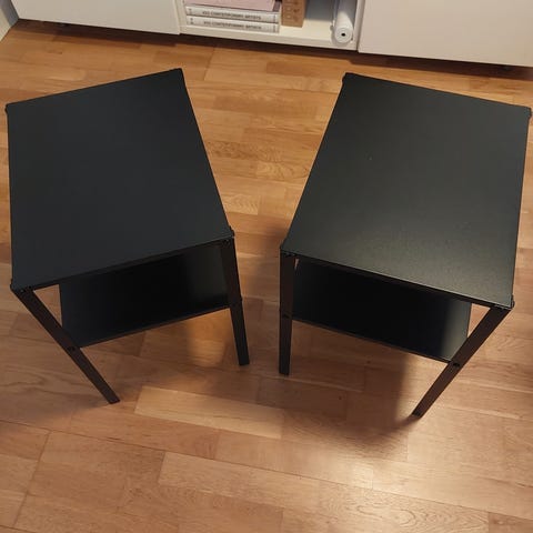 Pent sidebord/nattbord fra IKEA. Toppen er løs og kan snus, så man kan velge mellom svart og hvit/beige bordplate.