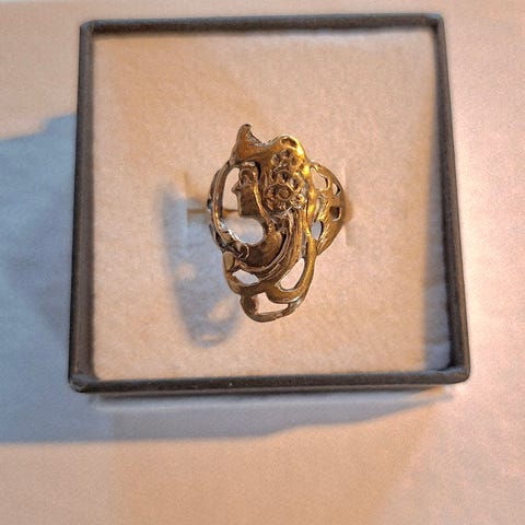 Kraftfull statement-ring i massiv messing, formet som en drage/slange som slynger seg rundt fingeren. Ringen har et detaljert, nesten mytisk uttrykk med strukturert overflate og tydelig hodeparti – et smykke som virkelig fanger blikket.