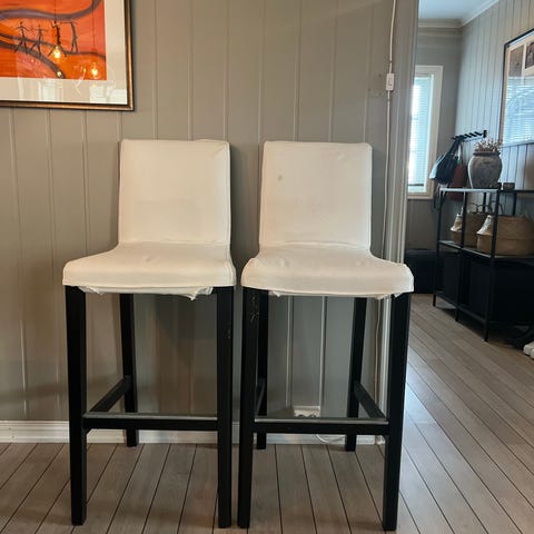 Svært lite brukte barstoler selges. 3 stk. Svart imitert skinn, natur eikefarget bein. Kr 500 for tre like stoler. Må hentes på adressen.