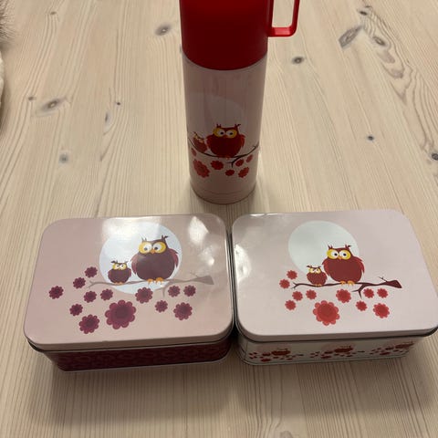 Pen rosa ugle-matboks fra Blafre.