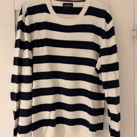 Jean Paul genser i størrelse L, laget av bomull. Genseren har svart farge med stripete mønster. Passer for menn.