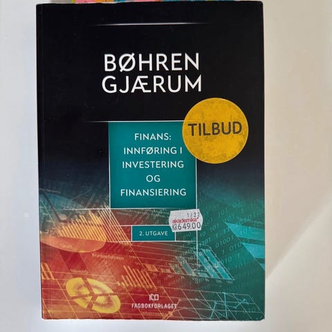 Bøhren Gjerum Finans: Innføring i investering og finansiering 3. utgave. Send melding om du lurer på noe! Skjekk profil for flere bøker!