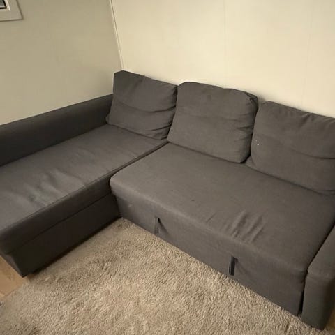 Ulrik på 11 år selger sin pent brukte HAMMARN sovesofa fra Ikea for å finansiere litt gamingutstyr. Ingen synlige flekker, svært lite brukt.