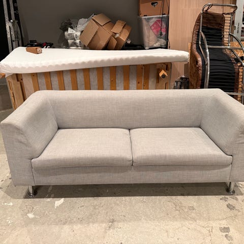 Brukt, grå 3-seter sofa. Fra husstand uten dyr eller røyking. Litt slitt på armlenene (vist på bilde 3). Må hentes selv fra Fagereng.