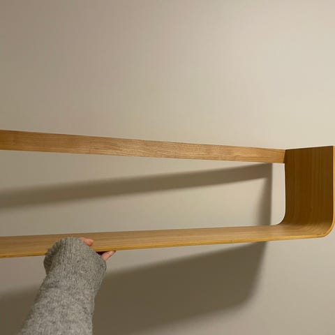 Furu hylle fra IKEA, trofast. Malt i en dus rosa farge.