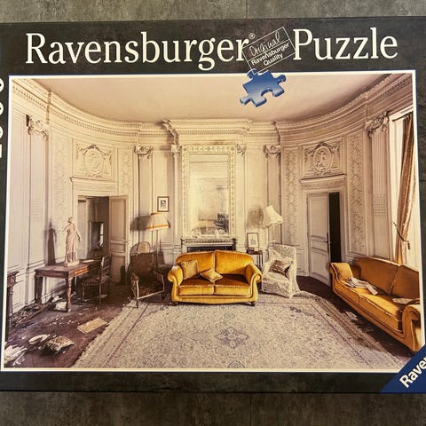 Selger ulike puslespill. Fire av puslespillene er med 1000 brikker, to er med 1500 brikker.