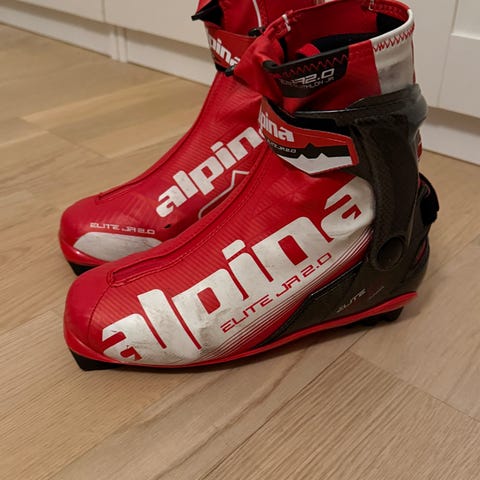 Alpina Racing junior skisko i størrelse 41, fargen hvit og rød. Skiskoene har overdel, fôr og såle laget av syntetisk materiale. Egner seg til både klassisk og skøyting.