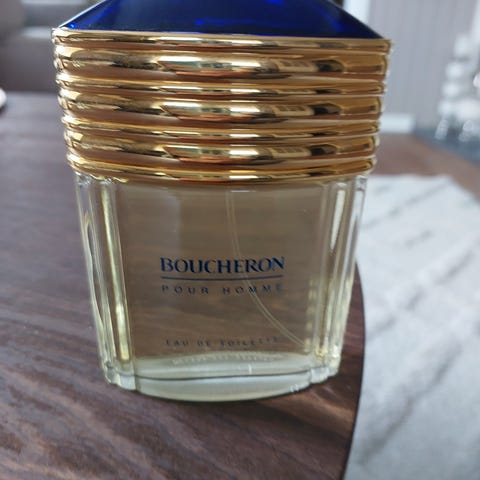 Boucheron Femme Classic Ringline Eau de Toilette med en volum på 50 ml. Parfymen er designet for kvinner og kommer i en flaske med blå og gull detaljer.