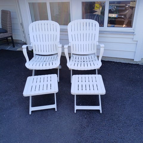 Dekkstol Brogrens med avtagbart bord til drinken på armlenet.