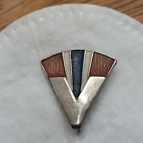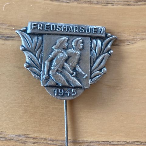 3 forskjellige pin fredsmarsjen 1945.militært merke og det siste er jeg usikker på.