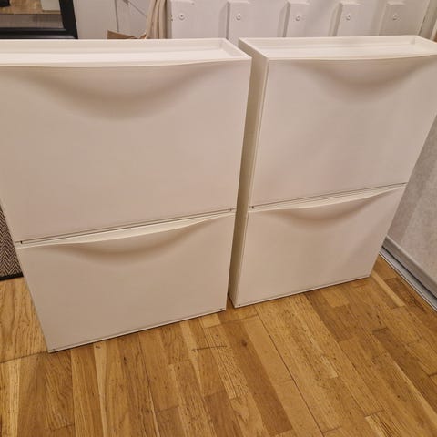 3 sorte skoskap type Trones fra IKEA selges. Brukt, og ligger på en hylle i boden. Er hele og fungerer, men noen bruksmerker er der nok.