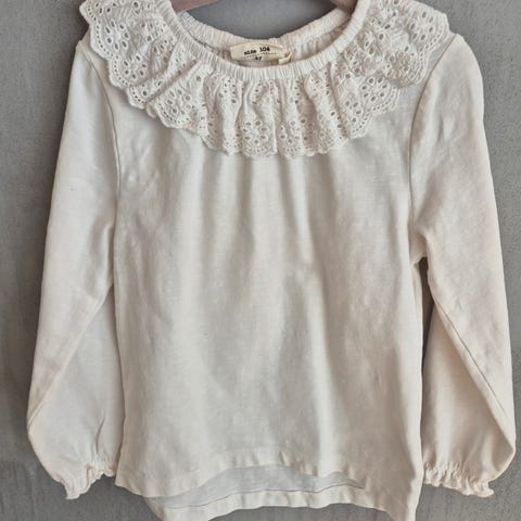 To genere fra Arket. Den gule med hund er en litt lengre modell. Kunn brukt et par ganger. Den beige med marihøner og rysjer på brystet er brukt ca fem ganger. Str 134/140
