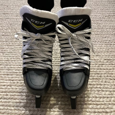 CCM Tacks 3092 ishockeyskøyter for barn i størrelse 37. Skøytene har svart farge med gule detaljer og hvite lisser. Egnet for ishockeytrening. God og stiv støtte. Mye skøyter igjen.