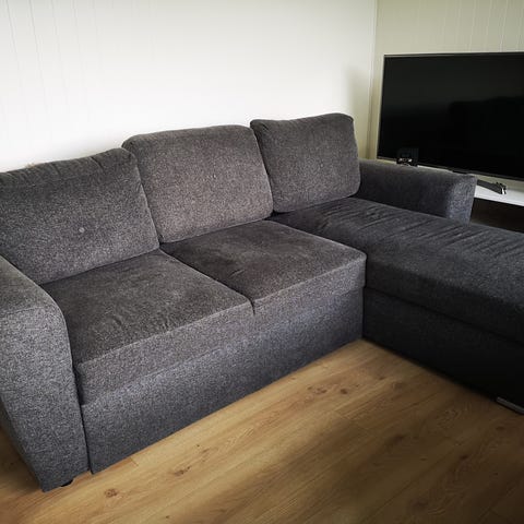 Selger meget pen sofa da den ikke blir brukt og trenger og frigjøre plass, sofaen kan demonteres i 4 deler og kan sette den lange deler på den siden man ønsker