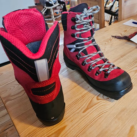 Lett og konfortabel fjellskistøvel med utvendig snøring. Konstruert for korte og mellomlange turer. Lav vekt og god støtte. Brukt 2-3 ganger. str. 44