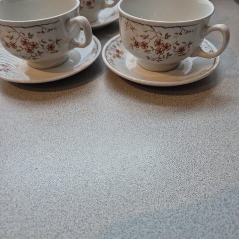 4 sett Figgjo Saga kaffekopper med skåler og asjetter selges.