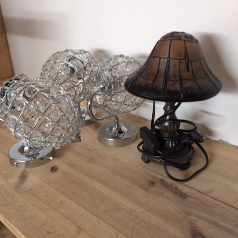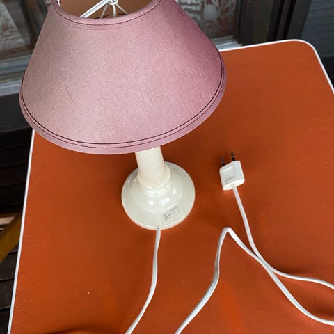 Vintage alabast bordlampe. Gir et fint lys, vanlig lyspære. Høyde 50 cm. Øvre og nedre diameter ca 23 cm.