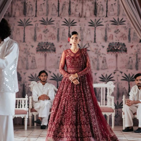 Pakistanske kjole til bryllup. Topp med lehnga og brodert jakke over som knytes foran. Kun brukt en gang selges med dubatta