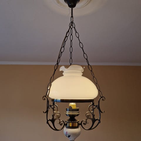 Selve lampen er 15 x 15 cm og 27 cm høy.