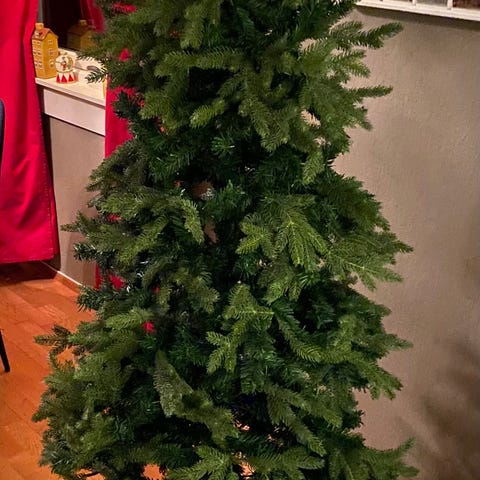 Brukt plast juletre til salgs, ca 180 cm høyt, lys medfølger til å sette på.
