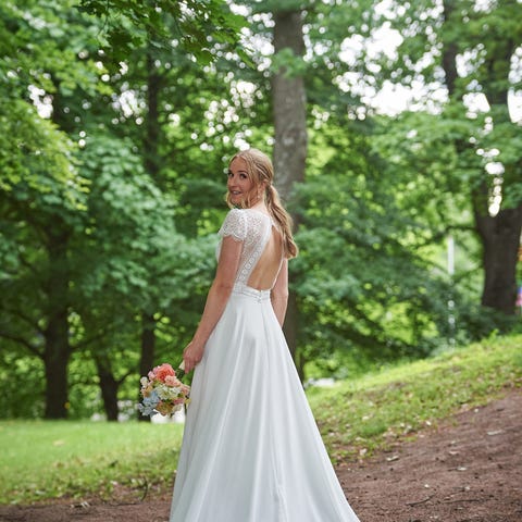 Kjolen ble kjøpt hos Ski Brudesalong i april 2025, brukt én gang og er profesjonelt renset. Klar for ny eier.